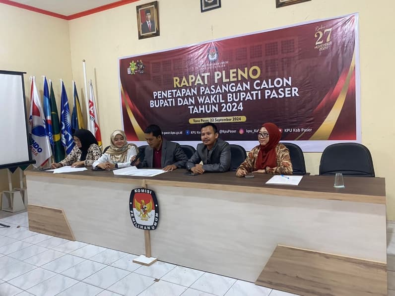 Tanah Grogot - Komisi Pemilihan Umum (KPU) Kabupaten Paser resmi menetapkan dua pasangan calon (paslon) Bupati dan Wakil Bupati di Pemilihan Kepala Daerah (Pilkada) 2024, Minggu (22/9/2025) malam tadi.