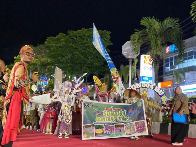 Bontang - SDN 004 Bontang Utara sukses menampilkan kostum indah yang dihias dengan seni ecoprint pada pagelaran Bontang City Carnival (BCC), Sabtu (25/10/2025) malam.