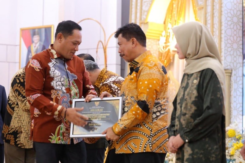 Tenggarong - Sekretaris Daerah (Sekda) Kutai Kartanegara (Kukar) Sunggono mewakili Pemkab menerima penghargaan juara tiga untuk kategori Pemerintah Kabupaten dan Kota dari enam nominator dalam malam penghargaan Keterbukaan Informasi Publik (KIP) tahun 2025 tingkat Provinsi Kalimantan Timur (Kaltim) yang berlangsung di Pendopo Odah