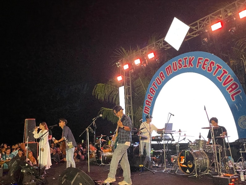 Penampilan Tri Suaka dan Nabila Maharani di Maratua Musik Festival (M2F) 2025, di Kampung Teluk Harapan, Kecamatan Maratua, Kabupaten Berau pada Sabtu malam (8/11/2025). (Foto: Baiq Eliana/seputarfakta.com)