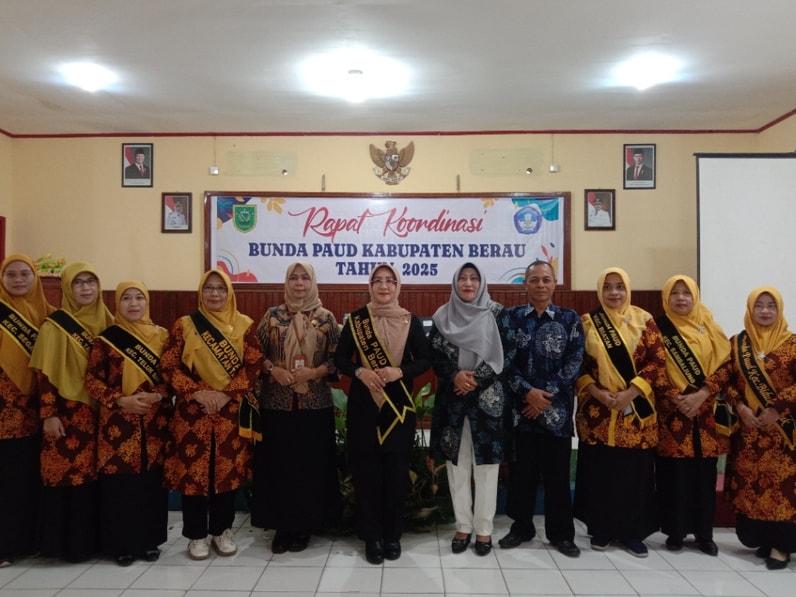 Foto bersama saat Rakor Bunda PAUD se-Kabupaten Berau, digelar di Gedung SKB Berau, Jalan Ramania II, Tanjung Redeb, Kamis (7/8/2025).