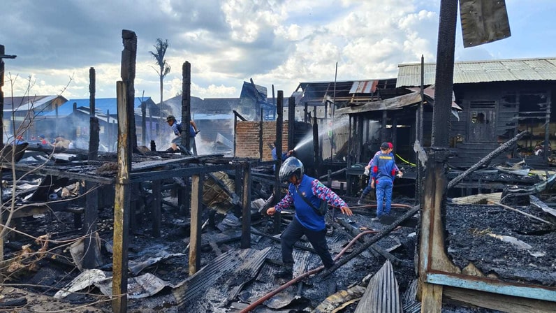 Sangatta - Kebakaran menghanguskan empat rumah kayu di Kecamatan Kombeng, Kabupaten Kutai Timur (Kutim), Rabu (18/2/2026) sore. Peristiwa yang terjadi sekitar pukul 15.00 Wita itu juga menyebabkan satu unit sepeda motor ikut terbakar.