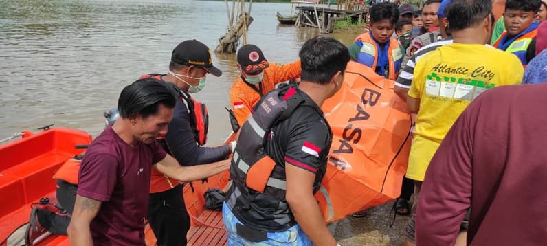 Korban tenggelam di Desa Sanggulan, Kecamatan Kota Bangun, Kukar telah ditemukan. (Foto: Basarnas)