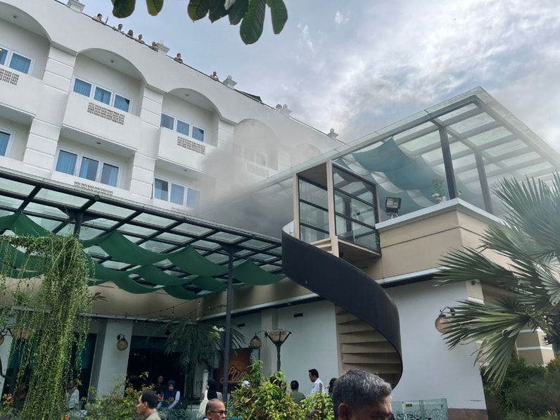 Salah satu saksi mata sekaligus tamu hotel, Ros, menceritakan detik-detik menegangkan saat ia berusaha keluar dari kamarnya di lantai dua.