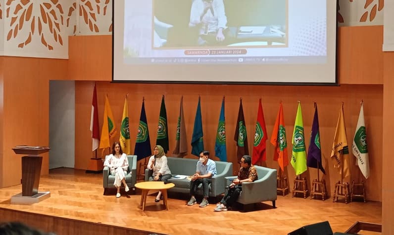 Launching dan diskusi buku Historipedia Kalimantan Timur yang diisi oleh Sejarawan Kaltim sekaligus penulis buku, Muhammad Sarip dan Nanda Puspita Sheilla. Dan dihadiri Deputi LHSDA Otorita IKN, Myrna A Safitri. (Foto: Maulana/Seputarfakta.com)