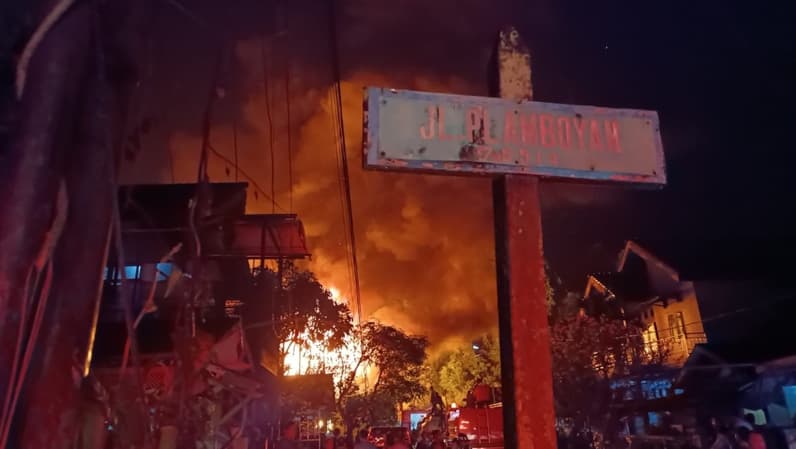 Tenggarong - Kebakaran di Jalan Flamboyan atau Taman Ulin, RT 13, Kelurahan Sukarame, Kecamatan Tenggarong, Kutai Kartanegara (Kukar) pada Senin (19/6/2023) malam tadi menghanguskan tujuh rumah dan satu gudang, yakni Asrama Sekolah Dasar Luar Biasa (SDLB).