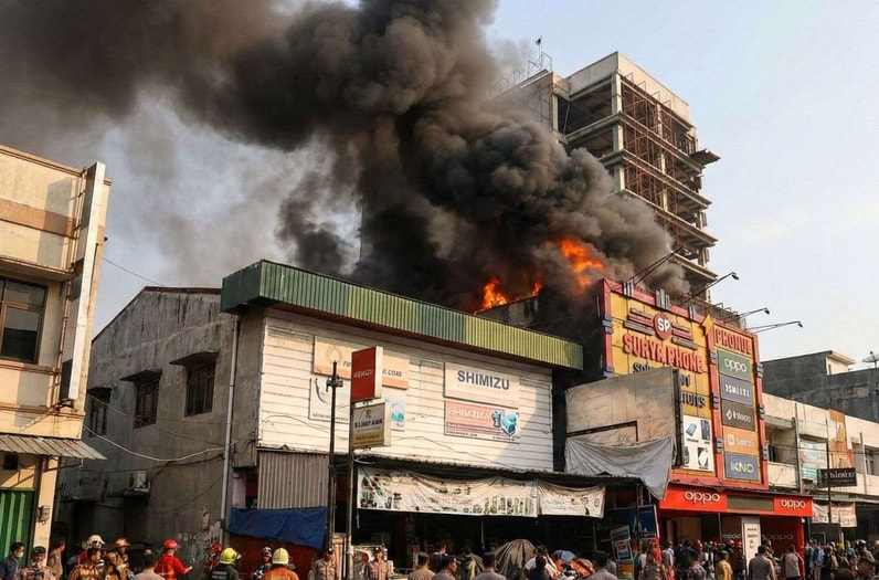 Bangunan yang terbakar diketahui merupakan Toko Surya Phone (gedung lama). Si jago merah dilaporkan mulai mengamuk sekitar pukul 16.05 WITA, tepat saat aktivitas perdagangan di kawasan tersebut sedang ramai.