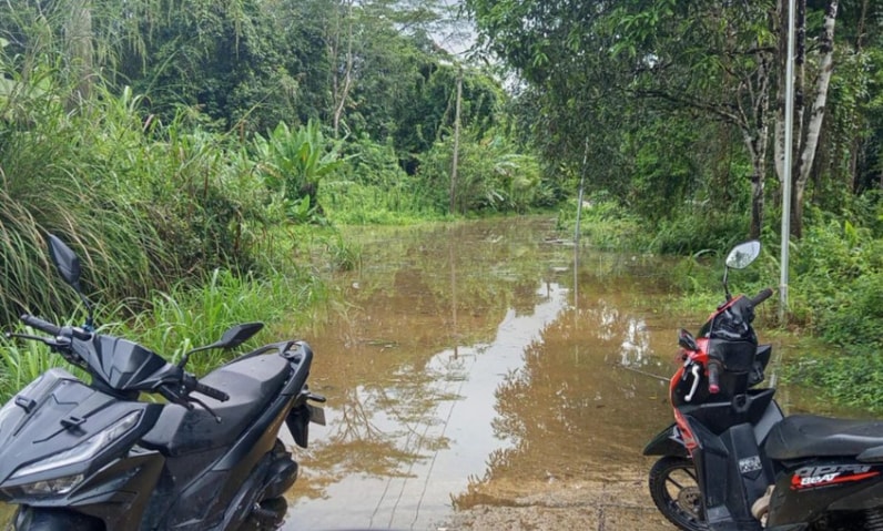Tenggarong - Air Sungai Belayan yang ada di Kecamatan Tabang, Kutai Kartanegara (Kukar) meluap hingga ke badan jalan dan permukiman warga di Desa Sidomulyo dan Kampung Baru, Kamis (8/1/2026) sore.