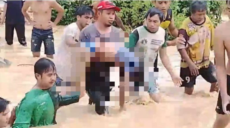 Santri malang itu, kemudian dipapah dan digendong dalam genangan air setinggi dada orang dewasa. Situasi di lokasi terlihat panik, dengan warga berupaya membantu proses evakuasi di tengah arus yang masih deras.