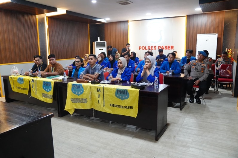 Audiensi dilaksanakan di ruang vidcon dan turut dihadiri Wakapolres Paser, Kompol Anton Sarman, Ketua PMII Paser, Ya Rahman serta 21 mahasiswa PMII.