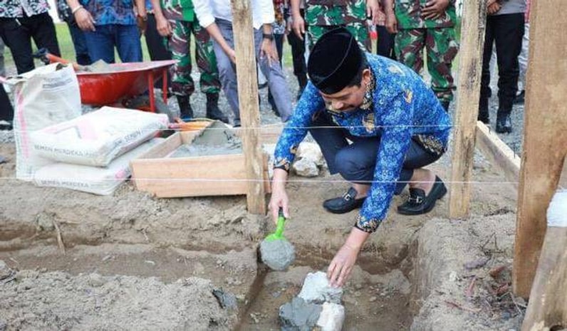 Potret Wabup PPU, Abdul Waris Muin saat melakukan peletakan batu pertama pembangunan Koperasi Merah Putih di Giripurwa (Dok: Humassetkabppu)