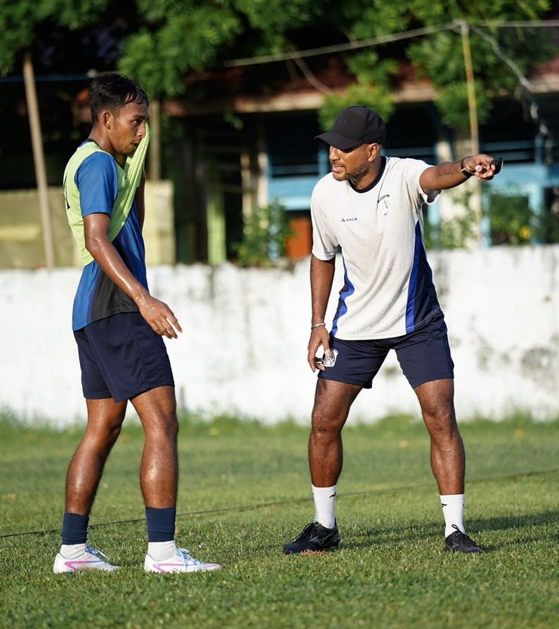Pelatih kepala Persiba Balikpapan, Leonard Tupamahu saat memberikan instruksi kepada salah satu pemain. (Foto: Official/Seputarfakta.com)