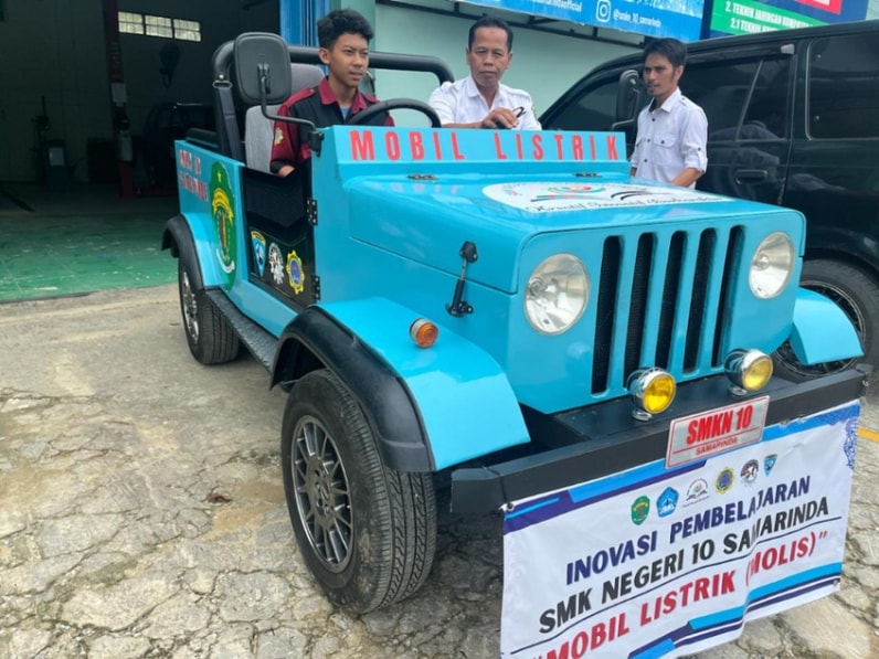 Samarinda - Siswa Sekolah Menengah Kejuruan Negeri (SMKN) 10 Samarinda, Kalimantan Timur (Kaltim), berhasil mengembangkan prototipe mobil listrik.