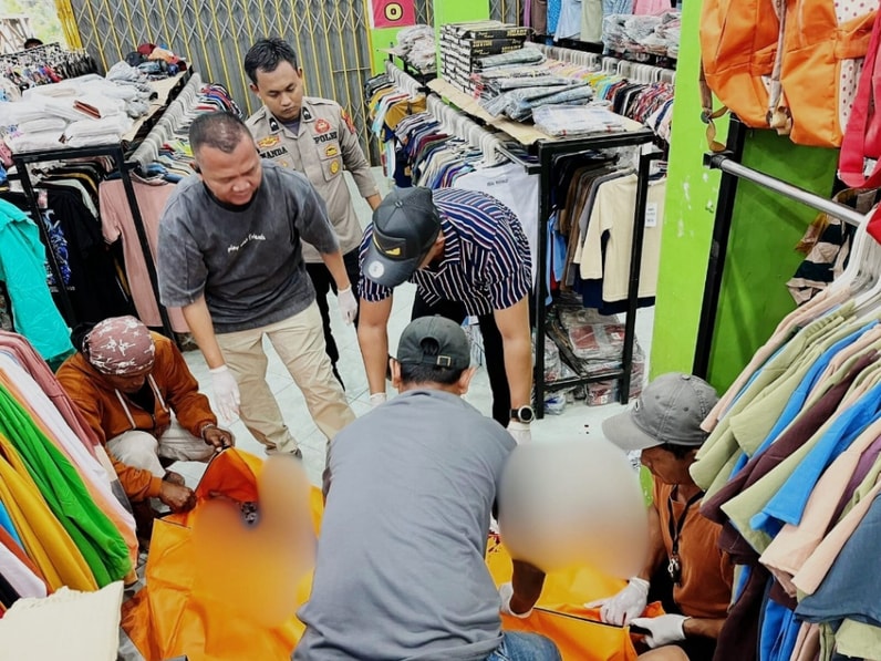 Evakuasi jenazah korban di sebuah toko pakaian di Kecamatan Muara Wahau, Kabupaten Kutai Timur. (foto: Humas Polres Kutim)