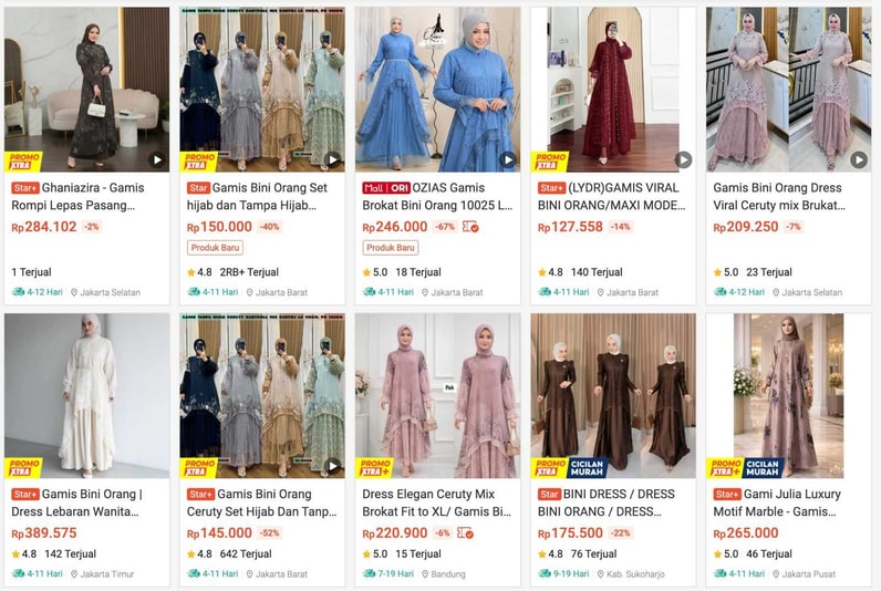 Penjualan Gamis Bini Orang di marketplace begitu masif. (Foto: Tangkapan Layar)