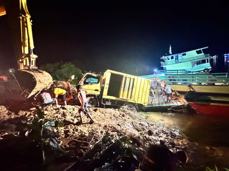 Dalam insiden ini, tiga mobil bermuatan barang dan pangan ikut tenggelam ke dasar Sungai Mahakam.