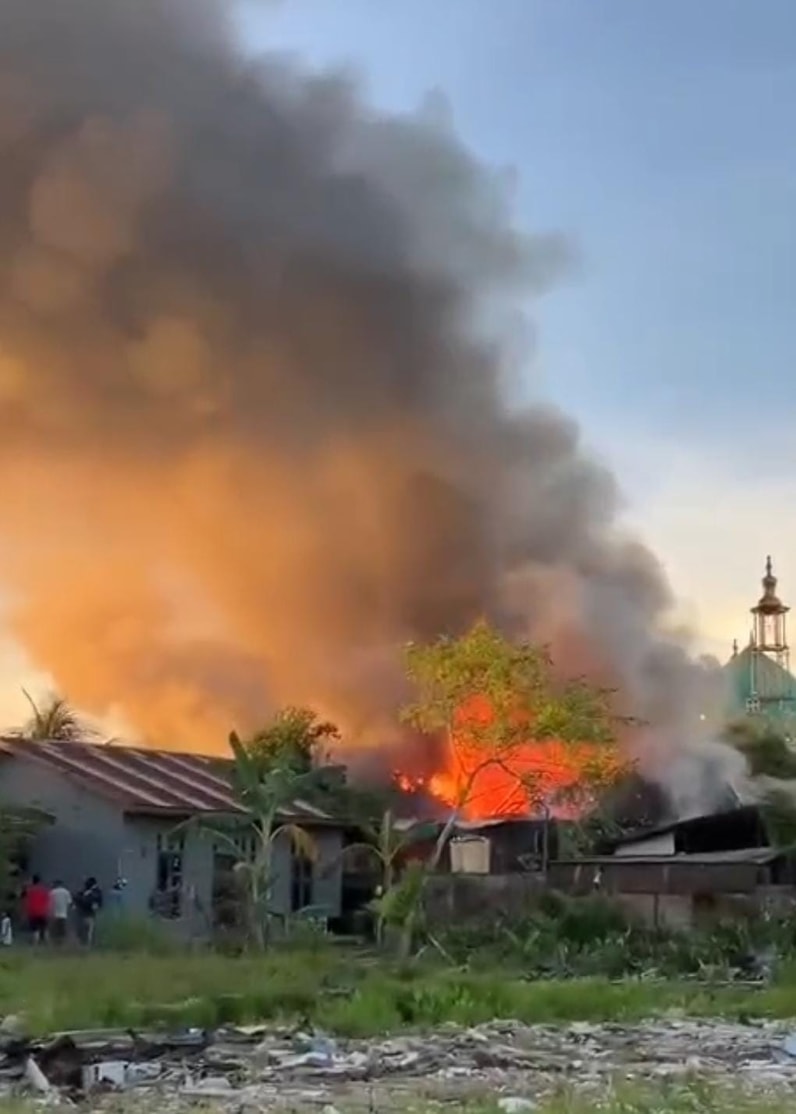 Api pertama kali terlihat dari salah satu rumah warga dan cepat membesar, disertai asap tebal yang terlihat dari kejauhan. Kejadian itu sempat membuat warga sekitar panik.