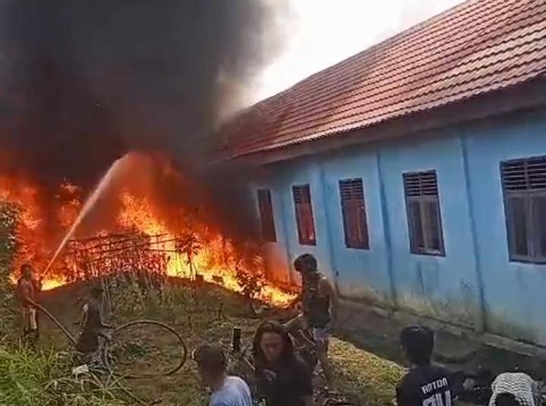 Tangkapan layar video masyarakat saat api merambat ke gedung sekolah SMPN 1 Segah.