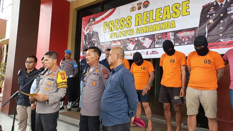 Press Release Polresta Samarinda Kasus Penganiyaan. (Foto: Tria/Seputarfakta.com)