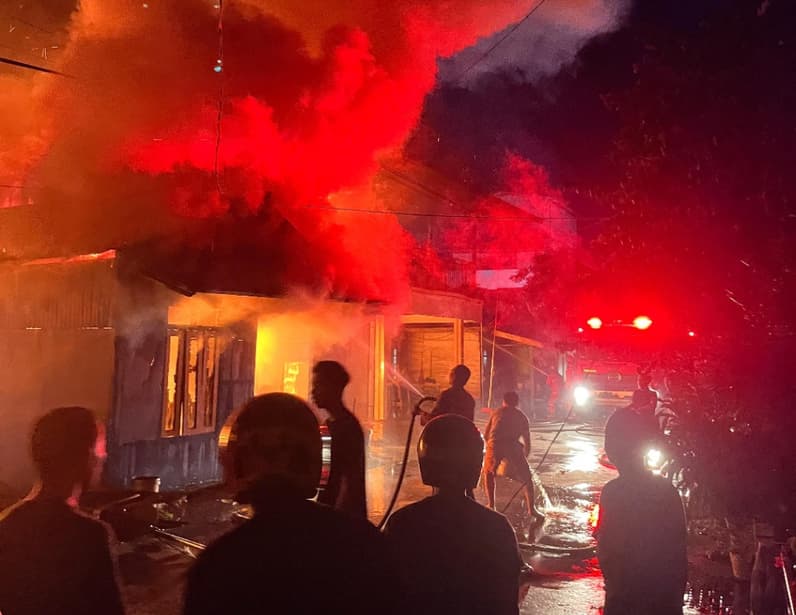 Kebakaran yang terjadi di di Jalan Pemuda, tepatnya di Gang Muslimin, pada Sabtu malam (19/7/2025). (Foto: Baiq Eliana/seputarfakta.com)