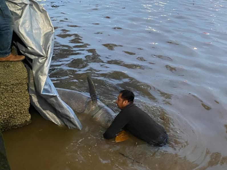 Pengevakuasian pesut di sungai Mahakam pada Jum'at (21/9/2024) sore. (Foto: Maulana/Seputarfakta.com)