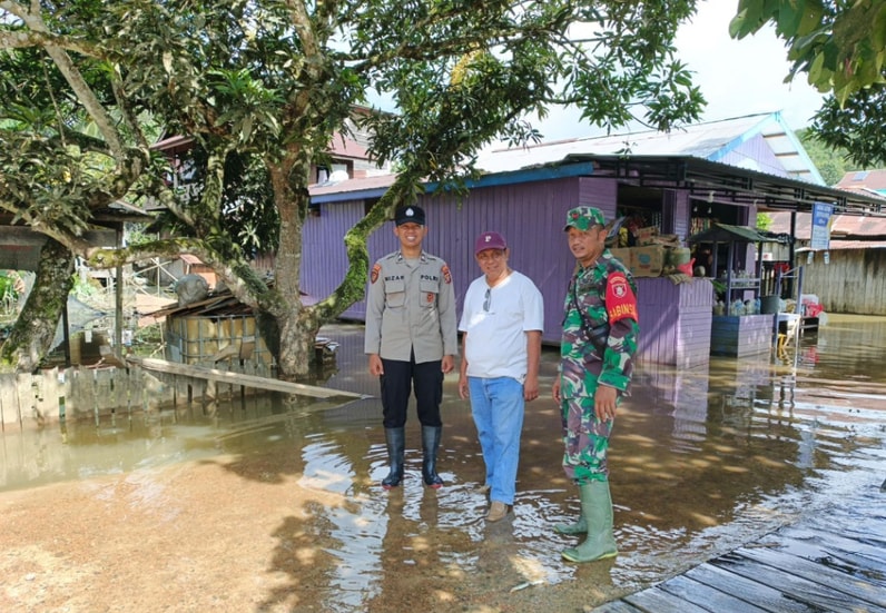 Jajaran Polres Kutim bersama Polsek setempat melakukan pemantauan dan pengamanan di wilayah terdampak banjir.