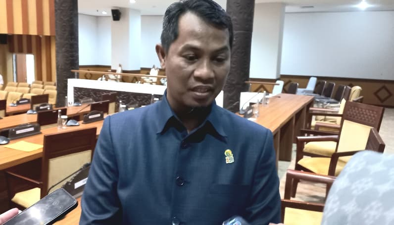 Direktur Utama Perumda Varia Niaga, Syamsuddin Hamade saat diwawancara di Gedung DPRD, Rabu (21/8/2024). (Foto: Tria/Seputarfakta.com)