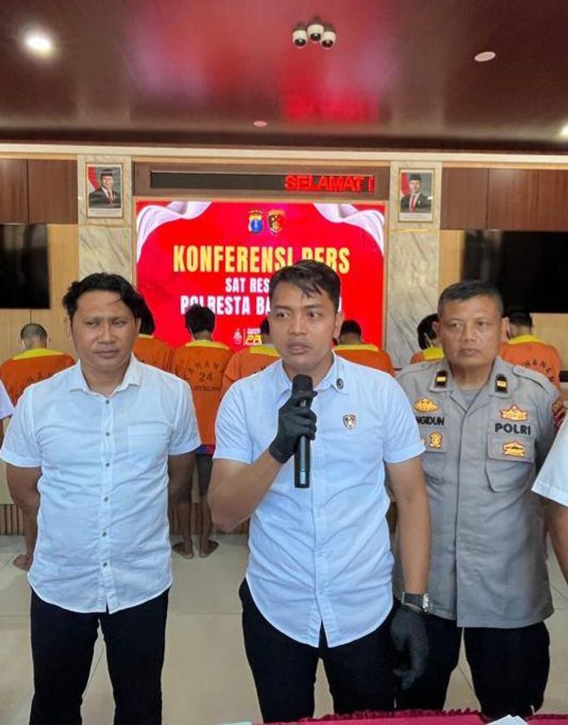 Kasat Reskrim Polresta Balikpapan, AKP Zeska Julian Taruna Wijaya (tengah) saat kegiatan konferensi pers. (Foto : Maya Sari/Seputarfakta.com)