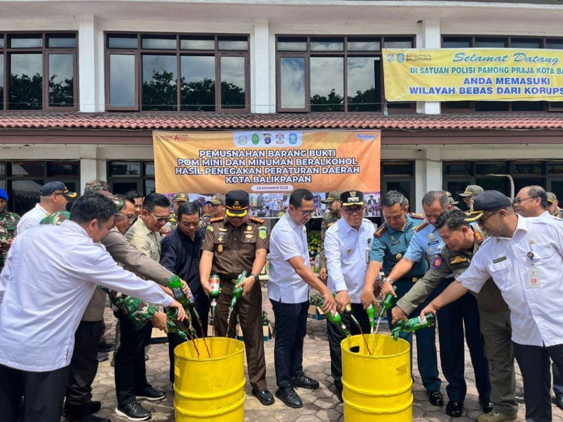 Balikpapan – Pemerintah Kota (Pemkot) Balikpapan melalui Satuan Polisi Pamong Praja (Satpol PP) memusnahkan barang bukti berupa pom mini dan minuman beralkohol ilegal hasil penegakan Peraturan Daerah (Perda). Kegiatan pemusnahan dilaksanakan di halaman Kantor Satpol PP Balikpapan, Rabu (24/12/2025).