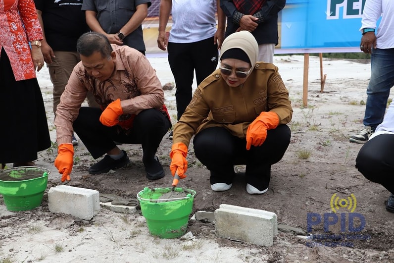 Wali Kota Bontang Neni Moerniaeni saat peletakan batu pertama pembangunan hunian subsidi berkualitas premium, Perumahan Elara Lestari. (Foto: Setda Bontang)