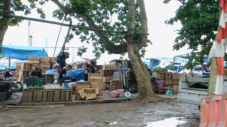 Pedagang yang berjualan di kawasan Pelabuhan Pasar Pagi, Jumat (28/6/2024). (Foto: Tria/Seputarfakta.com)
