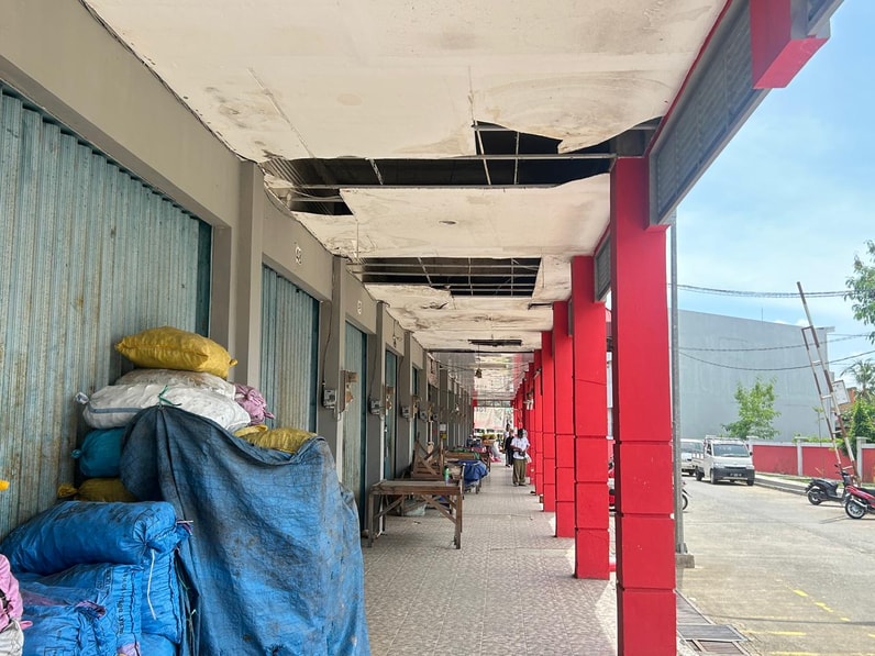 Plafon Pasar Mangkurawang yang mengalami kerusakan (Foto: Agus Saputra/Seputarfakta.com)