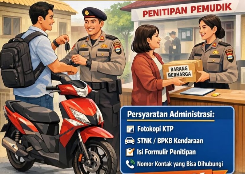 Melalui layanan tersebut, warga dapat menitipkan sepeda motor maupun barang berharga lainnya agar lebih aman selama pemiliknya berada di luar kota. Program ini juga bertujuan mengurangi potensi tindak kriminalitas, seperti pencurian kendaraan atau pembobolan rumah kosong saat musim mudik.