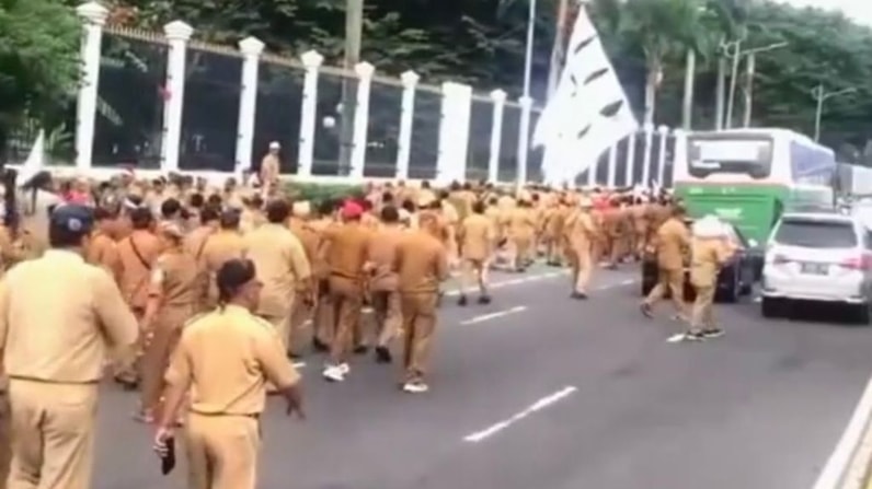 Aksi demo Kepala Desa (Kades) di Jakarta. (Foto: Tangkapan Layar)