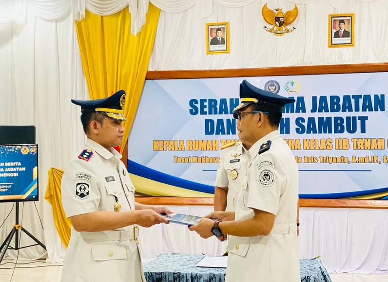 Tana Paser - Jabatan Kepala Rumah Tahanan (Rutan) Kelas IIB Tanah Grogot berganti, yang semula Yusuf Mukharom kini diganti Aris Triyanto melalui Serah Terima Jabatan (Sertijab).