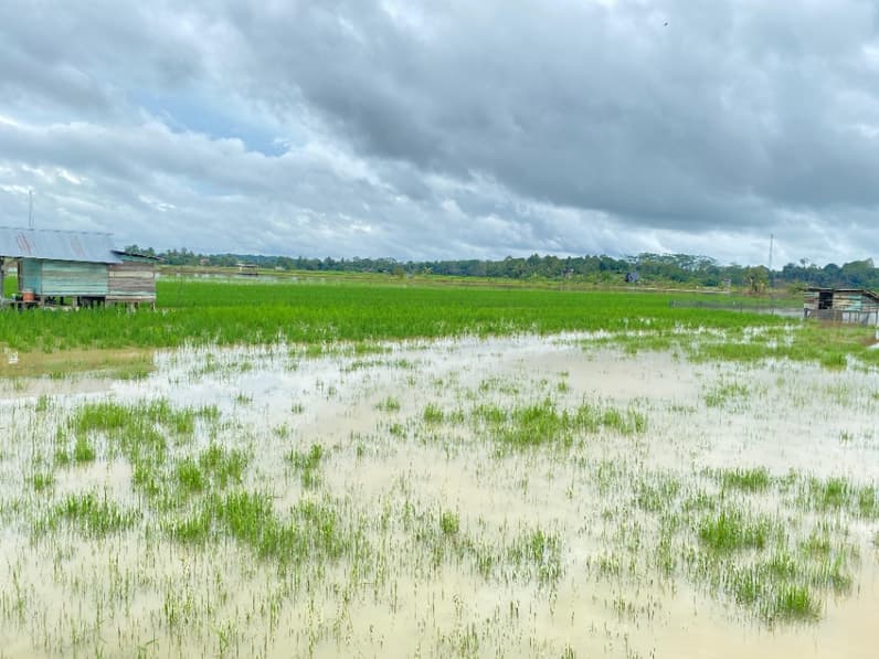 "Umur padi baru tiga bulan tanam, kalau ketinggian air yang disebabkan hujan ini sekitar 1,5 meter. Dampak dari banjir ini kami para petani tak bisa melakukan kegiatan bertani," ujarnya.