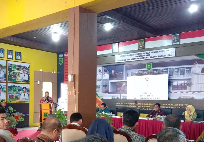 Komitmen tersebut disampaikan dalam Musyawarah Perencanaan Pembangunan (Musrenbang) tingkat kecamatan yang digelar di Pendopo Kecamatan Gunung Tabur, Kamis (12/2/2026).