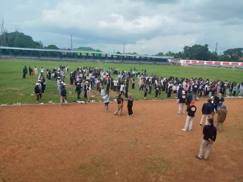 Ribuan peserta terlihat sedang mengikuti seleksi terbuka yang digelar oleh Terminal Olah Seni di Stadion Rondong Demang Tenggarong. (Foto:Agus Saputra/Seputarfakta.com)