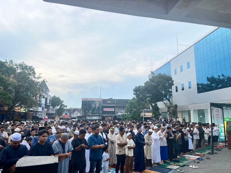 Pelaksanaan salat Idulfitri 1447 Hijrah berlangsung di halaman Bukopin, Balikpapan Permai (BP). (Foto: Maya Sari/Seputarfakta.com)