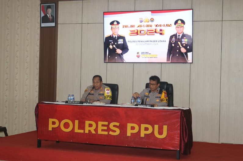 Kapolres PPU, AKBP Supriyanto dan Wakapolres PPU, Kompol Bambang Hardiyanto saat menggelar press release akhir tahun 2024, Senin (30/12/2024).(Istimewa)