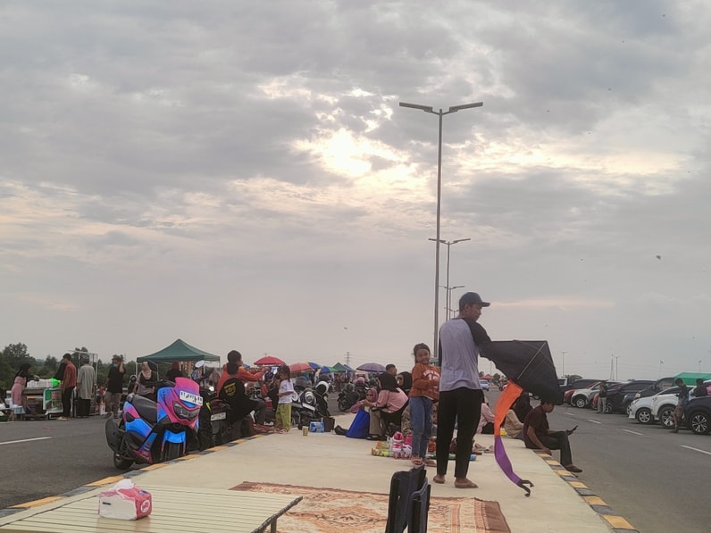 Sejak pukul 15.00 WITA pengunjung mulai berdatangan. Ada yang hanya berjalan-jalan sambil menikmati kuliner, bersepeda santai atau membawa anak-anak untuk bermain layangan.