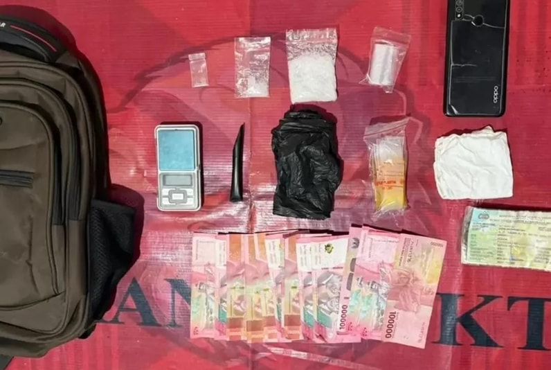 Dari hasil penggeledahan tim dilapangan menemukan barang bukti berupa tiga paket sabu, alat hisap, timbangan digital, plastik klip, uang tunai Rp1,3 juta, satu unit telepon genggam dan sepeda motor yang diduga digunakan untuk transaksi barang haram tersebut.