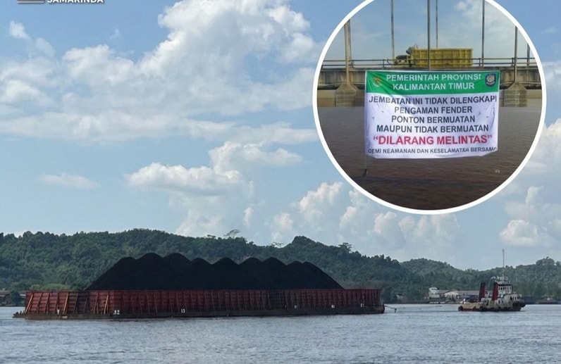 Ironi terlihat di lapangan. Meski Satpol PP Kaltim telah membentangkan spanduk besar berisi larangan melintas di kolong jembatan, kapal dan tongkang batu bara terpantau masih bebas berlalu-lalang.