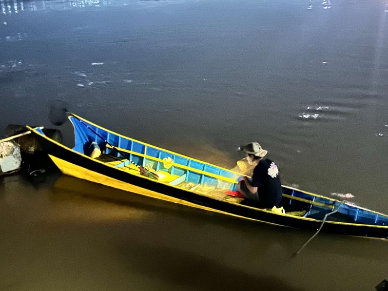 Tenggarong - Kondisi air Sungai Mahakam saat ini tengah bangar atau keruh yang mengakibatkan ikan maupun udang muncul ke permukaan.