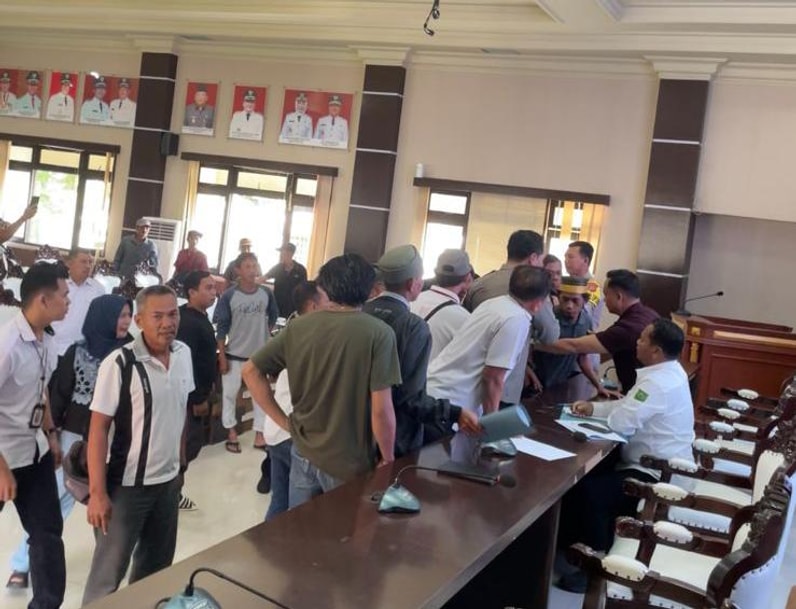 Kondisi saat ricuh di Ruang Sangalaki Kantor Bupati Berau. (Foto: Istimewa)